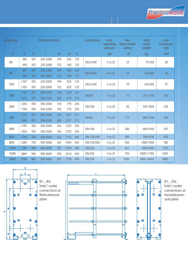 Thermowave | TL90SS | TL90PP | TL150SS | TL150PP | TL250SS | TL250PP | TL400SS | TL400PP |